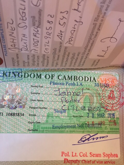 Für die 30$ (each!) Visumsgebühr haben dann 10 Beamte unsere ausgefüllten Formulare mit den Pässen verglichen und anschließend das manuell ausgefüllte Visum in den Pass geklebt. Schade, dass Ruth jetzt Peter heißt.