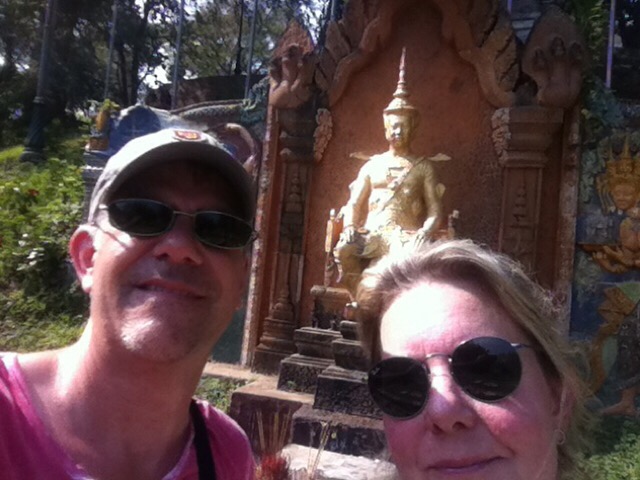 Danach zum Wat Ounalom – dem zentralen Heiligtum, da hier eine von Buddhas Augenbrauen aufbewahrt wird. Ruth hat einen Massage- und Beauty Termin um 13 Uhr also verweilen wir ein wenig im Tempel (siehe Titelbild).
