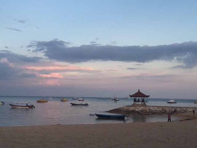 Dann ein Walk zum Strand und ich bin erschüttert! Das kann ja nicht sein, dass das einer der Strände ist, von denen jeder schwärmt. Bruchbude zum Essenfassen, drei Meter Sand, dann der „Tümpel“. Keine Welle, völlig flach, es dümpelt ein Ausflugs-/Fischerkahn neben dem andren. Sind wir im Hafen gelandet? Nach 2 Stunden Wanderung bei tropischen Temperaturen, ein klares Nein! Sanur sieht überall so aus, diese „Strandabschnitte“ werden nur von dem ein oder anderen Nobel-Resort unterbrochen. Da ist dann alles gewienert und poliert und die Boote dürfen nicht am Strand liegen. Alles in allem, eine absolute Enttäuschung, gemessen an dem Image der Traumstrände, die überall propagiert werden.