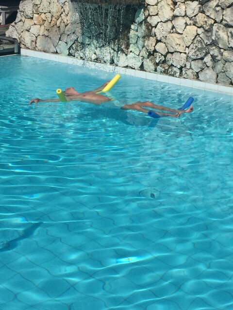 Wir machen das Beste daraus und werfen uns bei gefühlt 40 Grand in den Hotelpool 😎.
