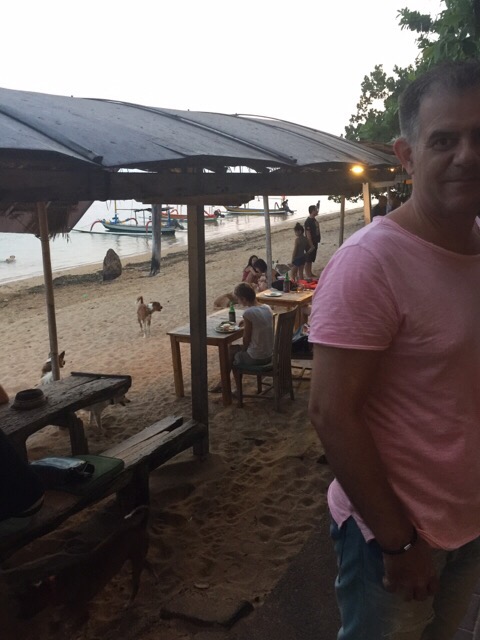 Abends dann die Chance für Sanur alles wieder rauszureißen: wir gehen am Strand Abendessen. Das Meer rauscht zwar nicht (wie auch ohne Welle), aber die Stimmung und das Essen versöhnen ein wenig.