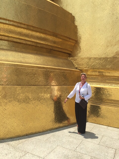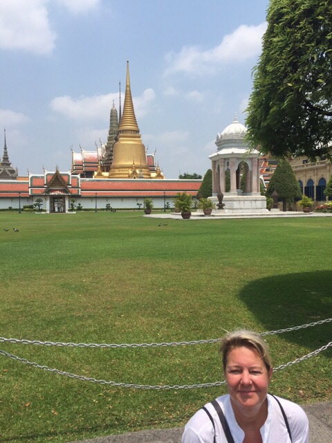 Im Gegensatz zu den bisherigen Palästen: wirklich lohnenswert, es ist ja auch der Smaragd-Buddha (aus einem einzigen Jade(!)block gefertigt) integriert. Das ganze Gold reflektiert die Sonne und verstärkt die Wärmeentwicklung; somit sind beide Lagen an Klamotten nach 5 Minuten „durch“. Es tropft einfach nur an allen herunter.