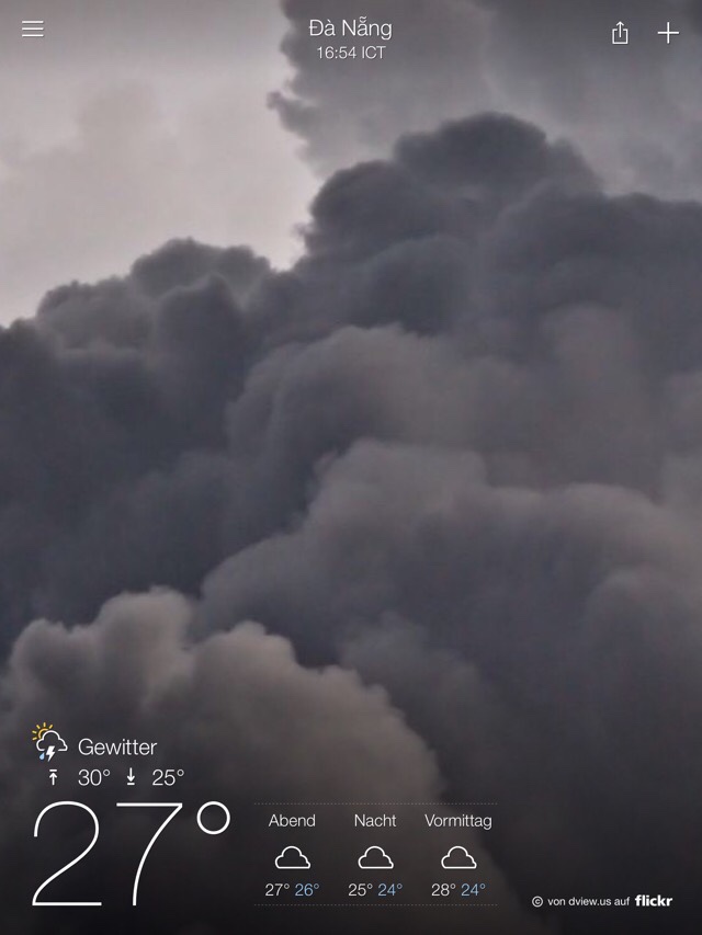 War ja klar. Zwischen Japan und Vietnam hängt ein Regen-Tief. Daher nur bedeckt, aber für den ersten Tag – was soll’s. Unsere Strandecke scheint bei Hochzeitspaaren sehr beliebt für das Fotoshooting zu sein. Zwei Couples mit kompletter Begleitung in drei…