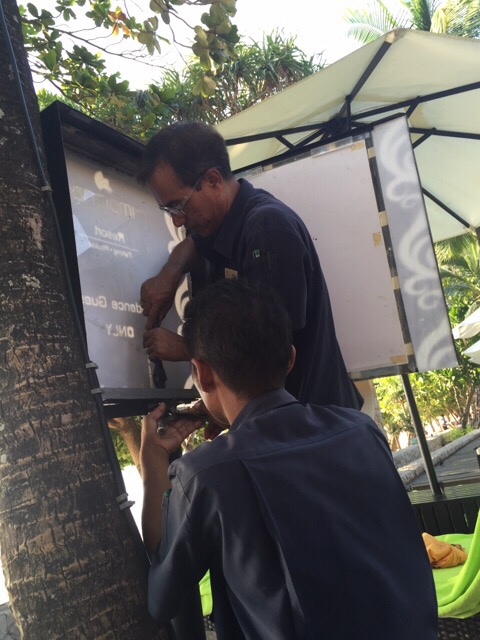 Heute scheint Aufräumtag zu sein, alle Hotelangestellten haben einen Blaumann an und es wird getackert und gehämmert. Zwischen 13 und 16 Uhr geht es sogar den Mücken mit der Giftspritze an den Kragen … wir bekommen davon wenig mit, da…